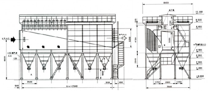 本除塵器是借鑒國內外先進技術研制成功的大型脈沖袋式除塵器,是單元組合式結構,可根據用戶需要串接或并接組成整體。除塵器具有高效能、低消耗的噴吹裝置,可實現低壓力、短脈沖并適合長濾袋的清灰。除塵器設有預分離導向結構,可使含塵氣體由下部進入,粗顆粒被分離流入灰斗,氣流向上進入濾袋區,可實現順噴,提高清灰效果。