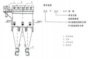 MDC: 表示煤磨型袋收塵器 ××—:表示單室過濾面積整數值 —××:表示室數  | ||||